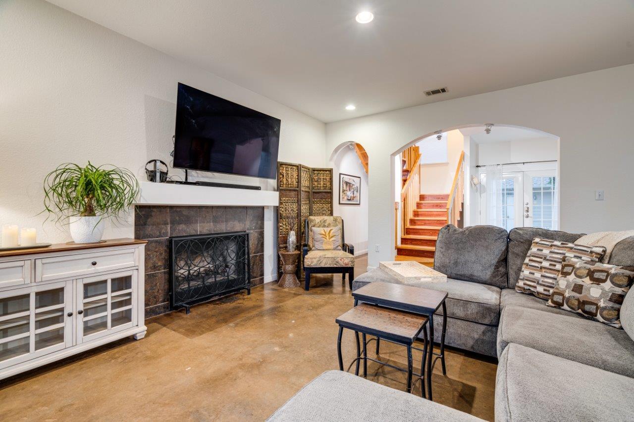 - The living room provides a space that is ideal for entertaining guests or relaxing with family.