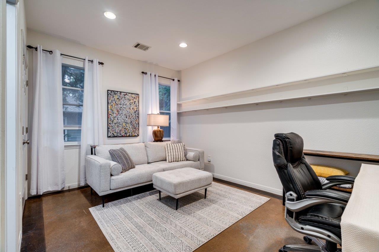 - Downstairs includes a versatile room that can be used as an office or guest bedroom.